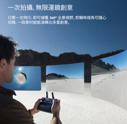 DJI 最新推出的 360° 全景 FPV 航拍機,將其定位為「全景航拍與 穿越機 FPV 飛行的革命性結合」,主打「先飛行,後取景」的全新創作邏輯。