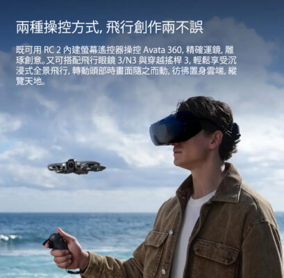 - 飛行眼鏡 N3 兼容:配合全新的飛行眼鏡 N3 與穿越搖桿 3,玩家可以透過頭部動作或手部感應來直覺化控制飛行與視角。