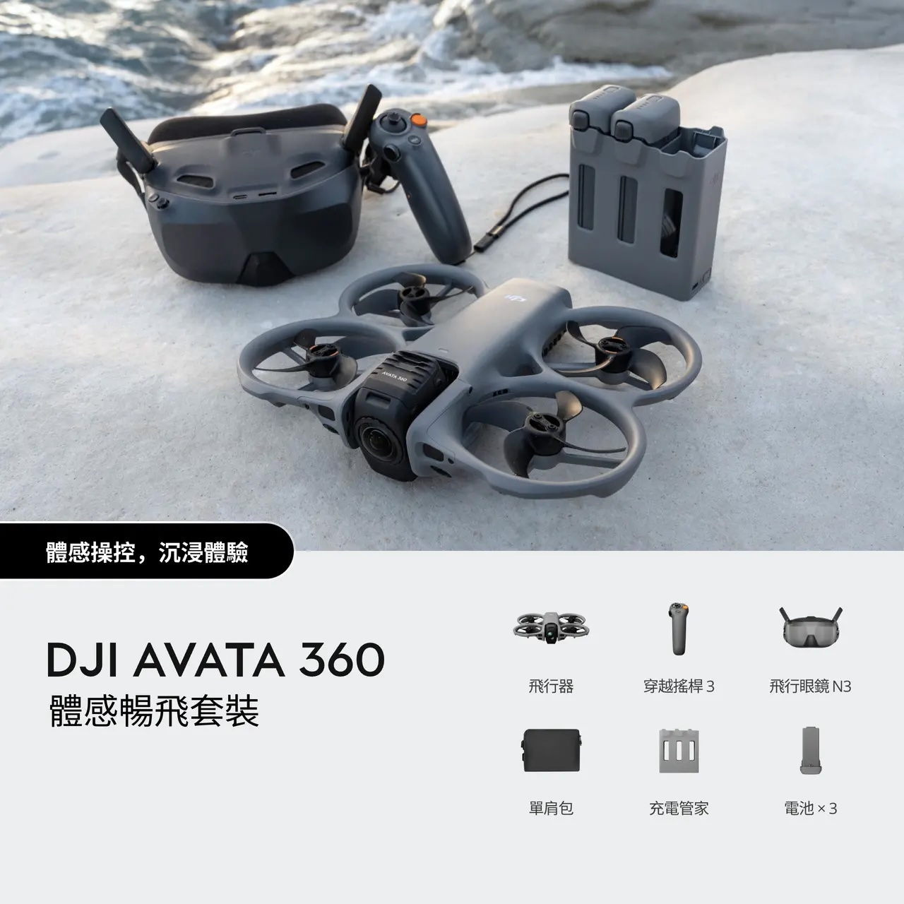 | 套裝版本 | DJI Avata 360(僅飛行器), DJI Avata 360(DJI RC 2), DJI Avata 360 暢飛套裝(DJI RC 2), DJI Avata 360 體感暢飛套裝 |