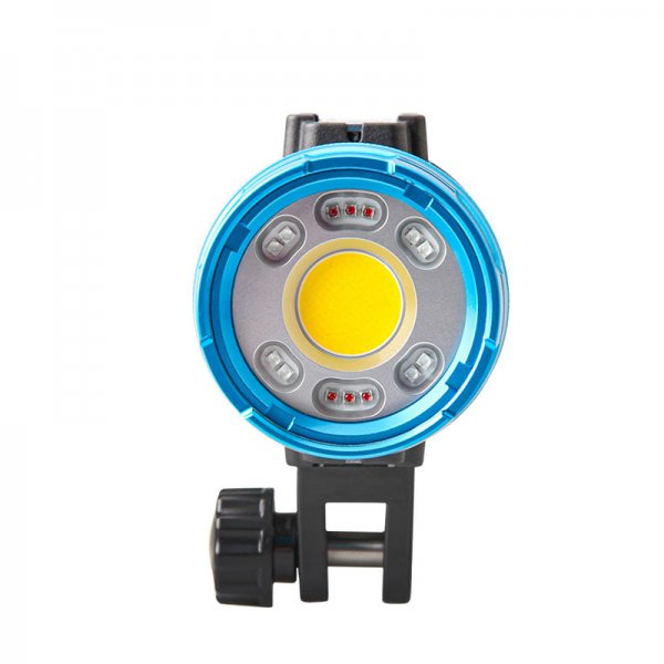 在頻閃模式下具有自動關閉功能,只要使用者將頻閃亮度調至 0% 即可關閉。當燈頭的光感應器偵測到頻繁閃爍時,水下攝影燈會自動關閉對焦燈,並在 1 秒後重新開啟。關閉功能不僅適用於對焦,也適用於正常拍照,從而使照片色彩更接近自然。Smart Focus 7000 水下攝影燈採用超高亮度 COB 整合光源,色溫為 5700K。側面 LED 由紅色和藍色兩種顏色的 LED 組成。攝影師可以根據不同的拍攝背景設定合適的光源,以滿足拍攝需求。
